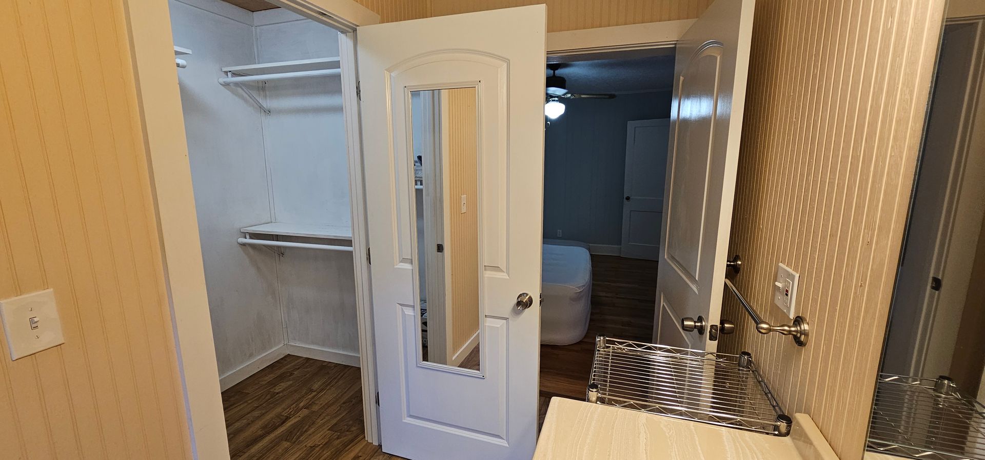 Relax and unwind on the rocking chair side porch, where you can savor a cup of coffee or a good book while taking in the tranquil views. The carport provides convenient shelter for your vehicle and additional storage space. Inside, the primary bedroom is a true haven, complete with a generous walk-in closet offering plenty of room for all your wardrobe needs. With its thoughtful layout and charming features, this country home is ready to welcome you.